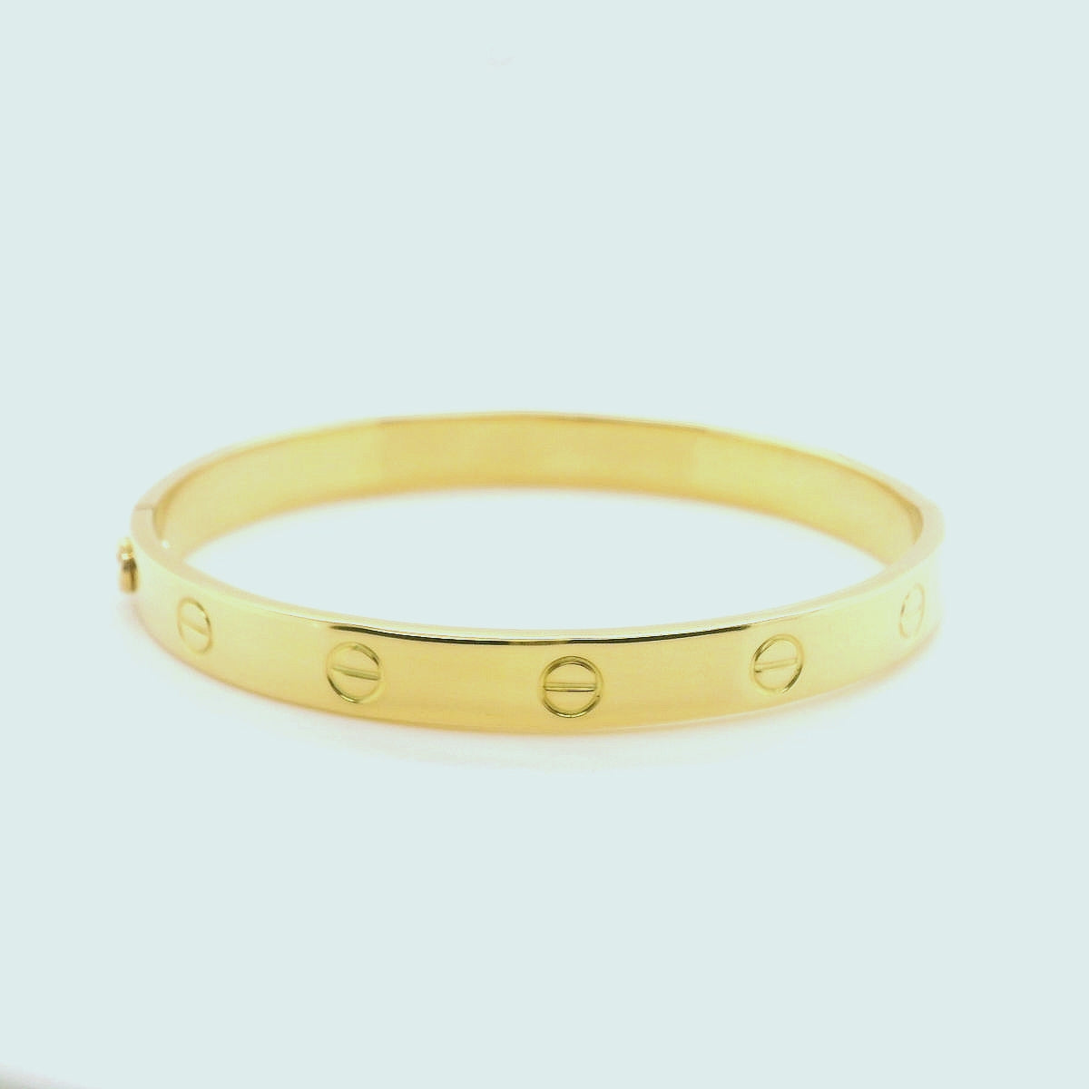 This stunning gold bracelet features a sleek design with subtle detailing, perfect for adding a touch of elegance to any outfit. Its minimalist style makes it versatile enough for both casual and formal occasions. Wear it alone or stack it with other pieces for a trendy layered look.