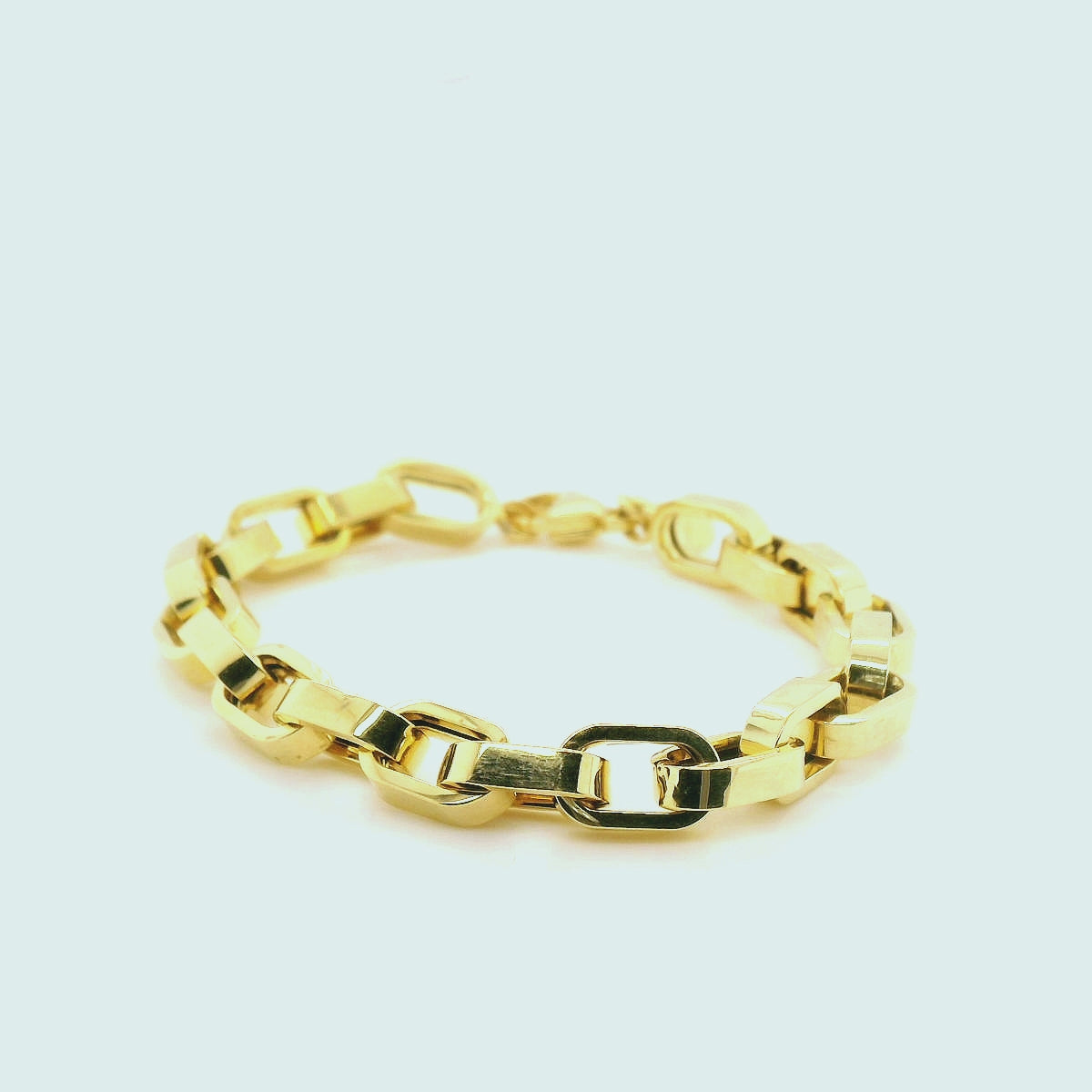 This stunning gold bracelet features a sleek design with subtle detailing, perfect for adding a touch of elegance to any outfit. Its minimalist style makes it versatile enough for both casual and formal occasions. Wear it alone or stack it with other pieces for a trendy layered look.